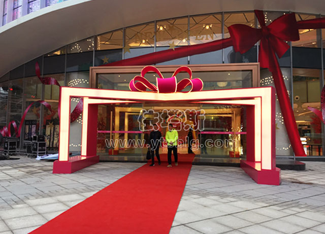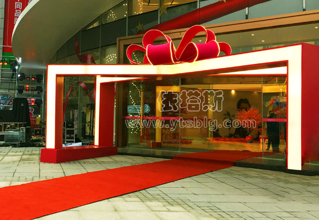? ? 商場門頭裝飾是如此的重要,門頭裝飾的好壞很大程度上直接影響著該商場的人氣和營業(yè)額。2018年春節(jié)即將臨近,新開業(yè)的岳陽新天地門頭采用創(chuàng)新裝飾,商場大門口設(shè)計一個大型的禮盒,該禮盒長達12米,寬度3米,高度4.5米,該造型由依塔斯全程精心打造。