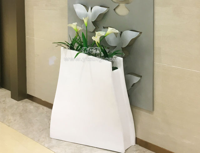 ? ? S型扭曲花盆長度為800,寬度為200,高度為900MM。獨具創(chuàng)意的造型在眾多花盆中脫穎而出,200MM的厚度非常適合靠墻擺放且不占空間。創(chuàng)意的造型跟后面的墻面裝飾完美結(jié)合為商場增添別樣景致。