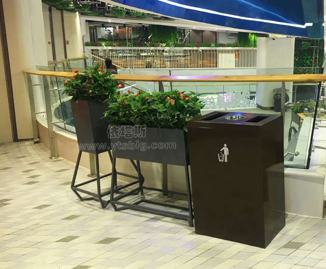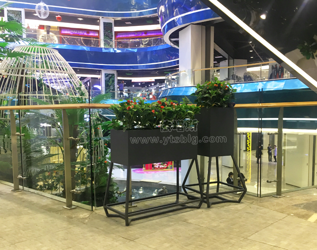 ? ? 這組極具幾何感的花盆,主體花槽部分尺寸設(shè)計(jì)偏小,鏤空的鐵制腳支撐,不但節(jié)省材料而且整體給人輕盈感與時(shí)尚感。冷靜的灰色搭配翠綠的盆栽給人滿滿的清新,別具一格的設(shè)計(jì)無不體現(xiàn)商場的現(xiàn)代感。它們既是花盆用來凈化和美化環(huán)境,本身也是藝術(shù)品具有一定的造景功能,時(shí)尚與優(yōu)雅并存,非常適合現(xiàn)代商業(yè)空間。