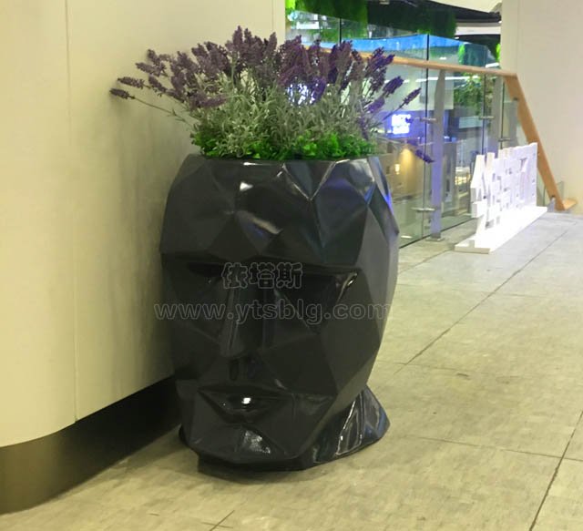 ? ? 依塔斯定制的這款菱形人頭花盆型號為HP631,尺寸規(guī)格為直徑600*1000mm,采用優(yōu)質(zhì)樹脂和玻璃纖維及進(jìn)口膠衣等復(fù)合而成,菱形人頭造型的玻璃鋼花盆經(jīng)打磨光滑表面四層噴涂做黑色亮光效果,具有造型精美、表面亮光高檔、強(qiáng)度高、耐腐蝕、抗老化耐用、免維護(hù)易打理等特點(diǎn)。