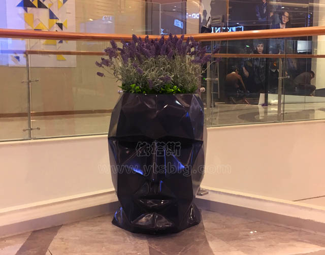 ? ? 該花盆擺放于湖南步步高新開業(yè)商場內(nèi),打破傳統(tǒng)的花盆形狀的設(shè)計,這款多面菱形設(shè)計更具現(xiàn)代科技感,復(fù)雜的人頭造型更是別具創(chuàng)意,濃濃的藝術(shù)感,花盆種植的薰衣草遠(yuǎn)遠(yuǎn)看去像極了頭發(fā)。整組花盆造型及搭配恰到好處,它不僅僅是花盆更像是一件巧奪天工的藝術(shù)品,能滿足高端商場的軟裝要求及氛圍的營造。