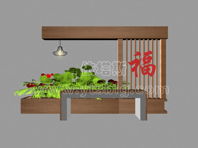? ? 整個(gè)商業(yè)街以福字為題分別布置不同造型的休息點(diǎn)位,因?yàn)槭侵袊L(fēng)的福字為主題,所以整個(gè)風(fēng)格以中式的設(shè)計(jì)為主。整組造型尺寸為長3000mm*寬300mm*高1800mm,眉頭長度為2600mm,小于底座的長度,這樣的設(shè)計(jì)除了美觀之外更重要的是考慮顧客的安全,底座較重則更穩(wěn)固不易傾倒。中間采用30*50mm木條進(jìn)行裝飾,設(shè)計(jì)成鏤空屏風(fēng)的造型,雙面粘貼上600*600的福字,突出主題。底座長度包含花箱,制作做成整體,也是出于穩(wěn)固設(shè)計(jì)。