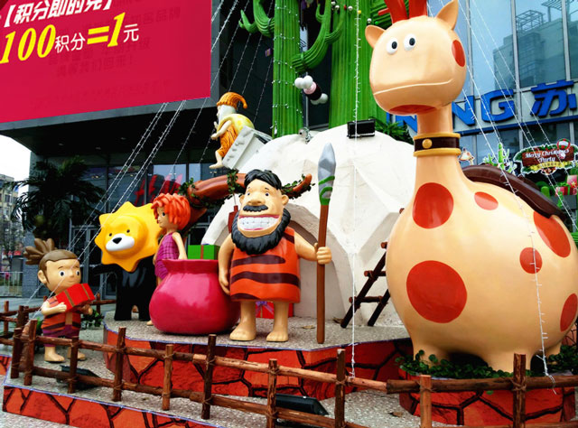 此次蘇寧廣場趁熱打鐵,深度挖掘現(xiàn)代人對“新奇特”的渴望心理:習慣了現(xiàn)代都市的新潮時尚,渴望返璞歸真已成為都市人向往的集體意識。通過想象力和創(chuàng)造力,以顛覆傳統(tǒng)創(chuàng)意的手法,在南京、無錫、連云港、蕪湖、成都、福州、汕頭、石家莊、西安、宿遷、盱眙特獻原創(chuàng)定制化的『原始圣誕嘉年華』大型互動美陳裝置,反映人與自然的和諧歡樂,為整個雙旦增添了山野和靈性的歡樂氣息,配合閃爍亮麗的燈光效果,耀目全城,為各城市民帶來“穿越時空”的互動體驗,打造圣誕朝圣地。