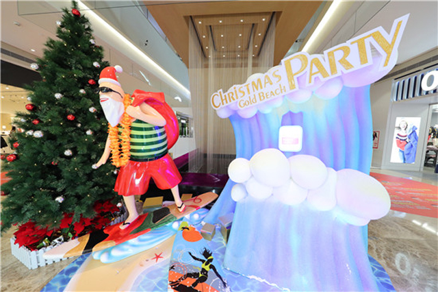 ? ? ? 來到一樓北中庭,只見圣誕老人踏著海浪款款而來,滿滿的口袋里全是你的禮物。