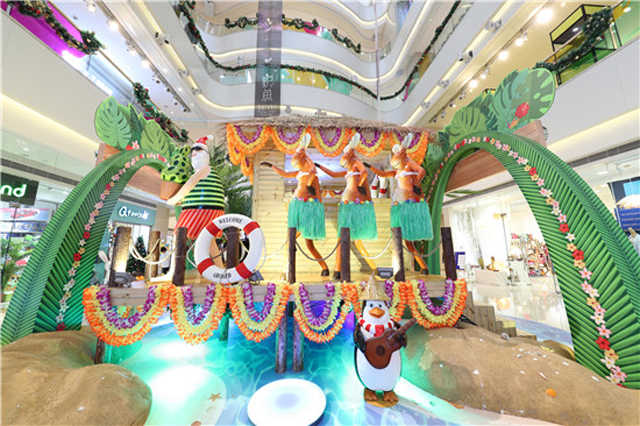 ? ? ? ? 創(chuàng)意十足的圣誕美陳果然名不虛傳,不僅高顏值帥爆朋友圈,還能開心暢玩拒絕擺設(shè)。從一樓大門內(nèi)開始,你便進(jìn)入一個(gè)前所未見的奇妙圣誕世界,短裙與熱舞,陽光與海浪,白色圣誕變身熱情沙灘。