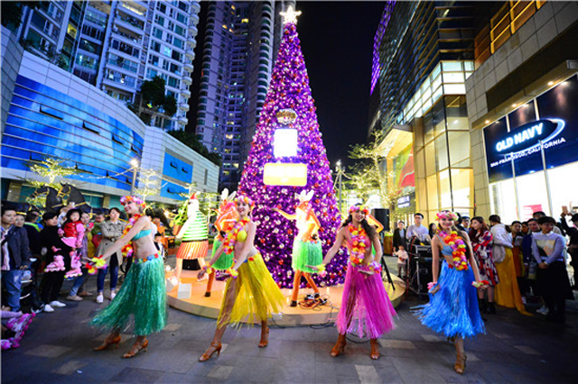 ? ? ?外廣場(chǎng)的紫色圣誕樹也是吸引,點(diǎn)亮圣誕燈便可牽著麋鹿一起跳一出草裙舞。