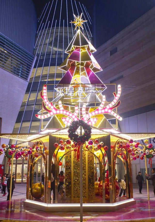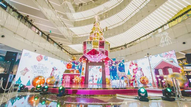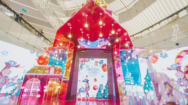 ? ? ? ? 中庭美陳裝飾的完美呈現(xiàn),點亮了的圣誕景觀和從魔法帽子里鉆出來的圣誕樹既是舞臺也是景觀。靚麗的色彩和形象生動的造型給人一種極致的浪漫體驗。
