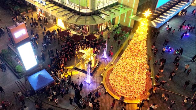 ? ? ? ? 廣場上至臻極簡風(fēng)格的金色圣誕樹,沒有累贅的裝飾,卻以28米的高度傳達(dá)奢華時尚的感覺。在各家頭破血流爭創(chuàng)意的局面下,依塔斯用一種回歸表達(dá)出純粹極致的圣誕氛圍。站在這樣的圣誕樹下,你無須再處心積慮得打扮,只需一抹簡單素色,配合臉上洋溢著的真實(shí)笑容,就能成為他人眼中獨(dú)一無二的風(fēng)景線。