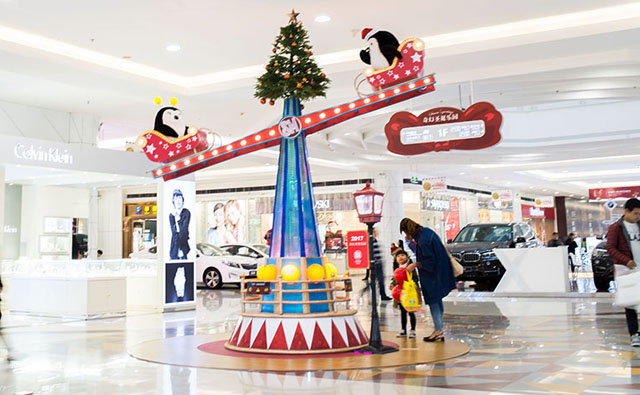 ? ? ? ? 圣誕大擺錘——此DP點陳列以兩只企鵝坐在圣誕大擺錘上玩耍為造景,內(nèi)置馬達機電裝置,一上一下的俏皮互動就像游樂園的蹺蹺板,讓小朋友們看得很開心。邊上飄雪的路燈更為這個歡樂的場面增添了一絲暖意。