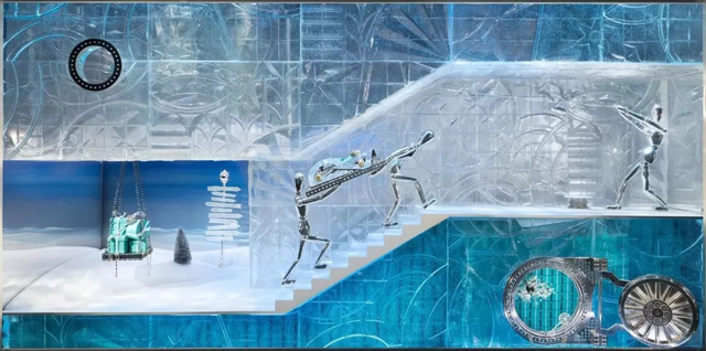 ? ? 今年的Tiffany櫥窗以其標(biāo)志性的藍(lán)色盒子為主題。由Gene Moore操刀設(shè)計(jì),陳列中的木人偶、冰雕等細(xì)節(jié)令人好奇又驚喜。