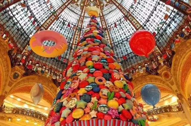 ? ? ?今年老佛爺?shù)氖フQ燈也早早點(diǎn)亮了,大家都知道,老佛爺每年一換的圣誕樹(shù)都是備受矚目的重頭戲——今年變成了由無(wú)數(shù)糖果、甜甜圈做成的圣誕樹(shù)。