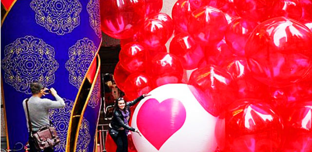 ? ? 在這個浪漫的季節(jié),香港時代廣場被150個玫瑰粉紅色發(fā)光氣球包圍著,有如沐浴在幸福中,為情侶戀人締造浪漫溫馨場面。裝置更會噴出心心型狀肥皂泡,讓各位在這充滿愛的日子,沉醉于更多幸福中。