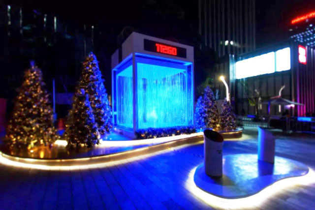 ? ? 美陳科技化——華潤萬象天地一直致力于通過引領(lǐng)性的藝術(shù)視角和高體驗(yàn)的空間裝置,為消費(fèi)者打造最具靈感與創(chuàng)意的高科技藝術(shù)空間。專為本次美陳打造的2個(gè)大型高科技“Gift Box”互動(dòng)裝置——“隨你百分百”和“心跳百分百”,運(yùn)用了骨骼捕捉、實(shí)時(shí)感應(yīng)、燈光動(dòng)畫特效等多項(xiàng)技術(shù)由音樂視覺藝術(shù)家,設(shè)計(jì)師和程序設(shè)計(jì)共同完成。