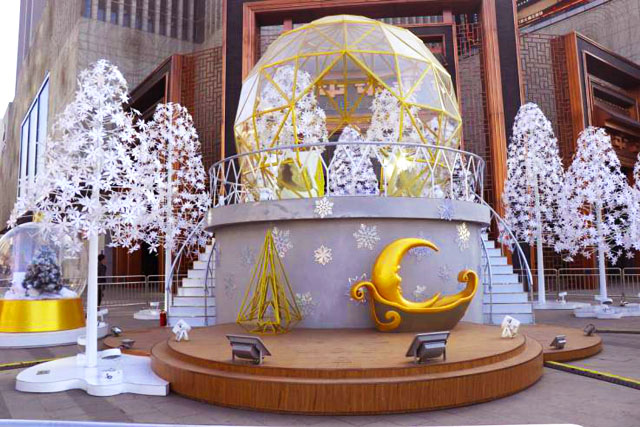 ? ? 在西安益田(專題閱讀)假日世界購物中心門前,中央這個巨大的水晶球非常具有童話感,雪白的樹群似乎是想要把人帶入一個冰天雪地的世界,水晶屋的設(shè)計使就像是坐在圣誕老人的雪屋里。