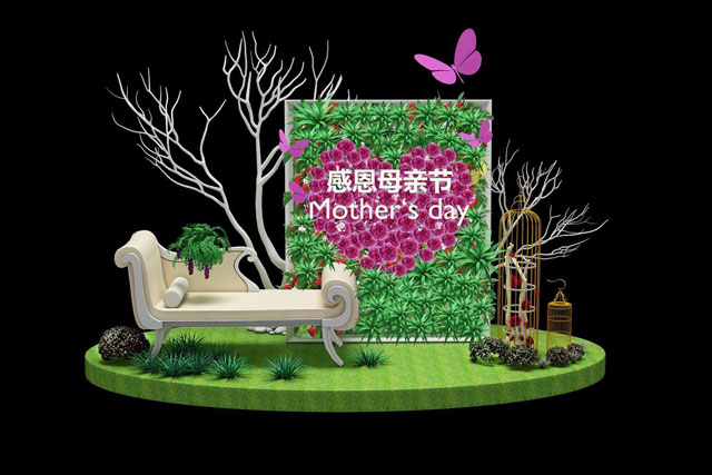 ? ? 一個(gè)好的節(jié)日美陳裝飾重要的是能述說一個(gè)故事、營造一種場景、創(chuàng)造一種心情、表明一個(gè)主題,從而給顧客一個(gè)明確的心理暗示,當(dāng)然母親節(jié)商場美陳裝飾就是營造一種講對(duì)母親的愛大聲說出來的場景。借助顧客色彩識(shí)別、喜好規(guī)律,營造提醒式購物模式,喚起顧客的購買欲望,由此傳達(dá)企業(yè)或產(chǎn)品所體現(xiàn)的動(dòng)感、質(zhì)感、美感,使顧客的購買行為充滿快樂體驗(yàn),為商品銷售和商家形象帶來巨大價(jià)值。