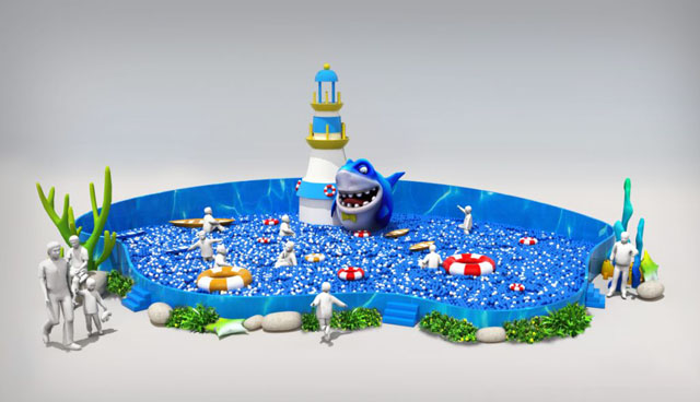 大中庭效果——神秘的海洋,兇猛的鯊魚變身到我們的現(xiàn)實生活當中,讓我們跟海洋來一次親密的接觸。