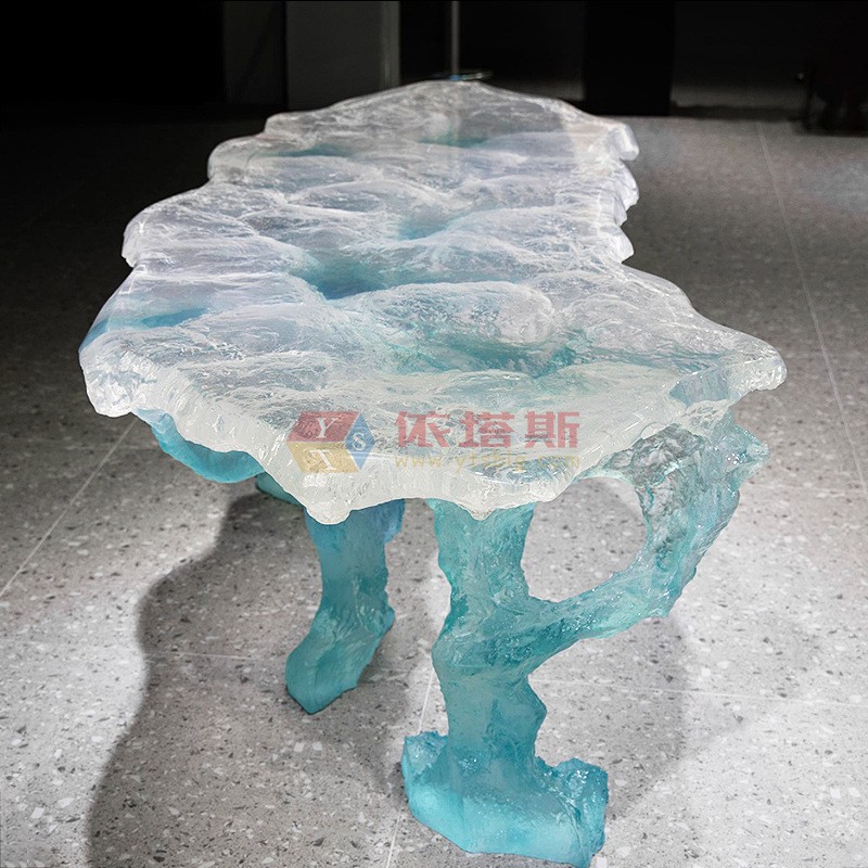 ? ? ? ? 它靜立在客廳一隅,卻仿佛將一整塊極地冰川私藏于方寸之間。這不是普通的桌子,而是一件用透明樹脂仿冰川色澤與肌理雕琢而成的藝術(shù)品,是凝固的極地時(shí)光,也是現(xiàn)代家居中一座微縮的永恒冰山。
