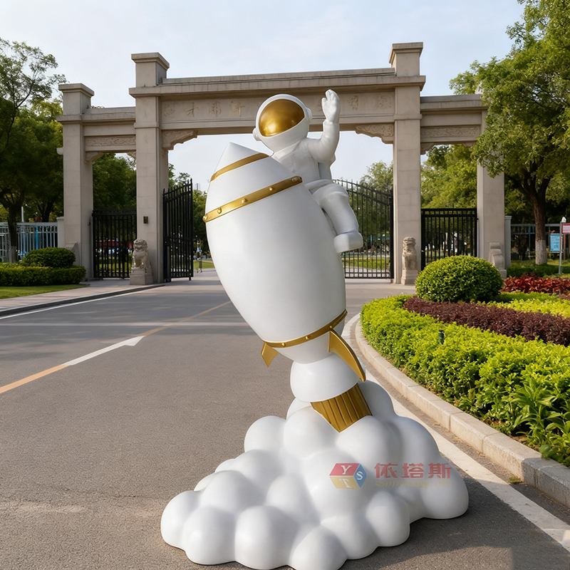 ? ? ? ? ?在公共藝術(shù)日益融入生活的今天,我們時(shí)常與各種雕塑不期而遇。但總有一些作品,能讓人瞬間停下腳步,心生震撼——那座由玻璃鋼打造的“航空員坐火箭打招呼”的雕塑,便是這樣的存在。它不僅僅是一件靜態(tài)的裝飾品,更是一個(gè)被瞬間定格的詩意敘事,一個(gè)關(guān)于人類探索精神與溫情聯(lián)結(jié)的生動(dòng)注腳。