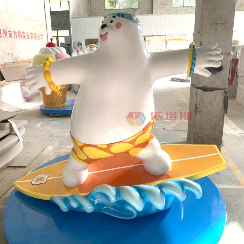 ? ? ? 這組雕塑全部采用高品質(zhì)玻璃鋼材質(zhì)制作。這種材質(zhì)不僅堅固耐久,能夠輕松應(yīng)對海濱城市的日曬雨淋,更以其卓越的可塑性和細(xì)膩的表面處理效果,將北極熊蓬松的毛發(fā)質(zhì)感、生動的表情神態(tài)以及豐富的動態(tài)細(xì)節(jié),都刻畫得淋漓盡致,色彩飽滿,栩栩如生。