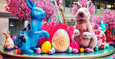 商場主題美陳布置是指百貨商店、購物廣場、大賣場等在大型節(jié)假日活動中美陳布置,利用商業(yè)環(huán)境原有的商業(yè)建筑、文化特點及審美需求等因素,對商業(yè)環(huán)境進行高品位的美化裝飾和陳列展示。主要目的是配合商場大型的主題營銷及開業(yè)促銷活動。主題裝置在設計方面要求主題鮮明、清晰明確、快捷即時性較強讓顧客一目了然,主題美陳布置色彩多以靚麗顏色為主便于吸引顧客的眼球。
